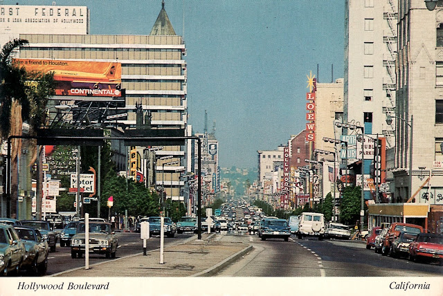 1955 - An August snapshot that Ruth Campbell found at a swap meet and posted on the Facebook page Vintage Los Angeles. We're looking south on Orchid St. (a block that no longer exists) with the Hollywood Masonic Temple to the right of the theatre. It had been called the Paramount since its 1942 remodel. It didn't go back to the El Capitan name until 1991.