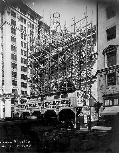 early 1960s - A photo from Marc Wanamaker's Bison Archives that appears in the great 2008 Arcadia Publishing book "Theatres in Los Angeles" by Suzanne Tarbell Cooper, Amy Ronnebeck Hall and Mr. Wanamaker. The page with the photo appears in a preview of the book on Google Books. Thanks, Marc! The theatre got a remodel in 1965 and again assumed the Tower name.