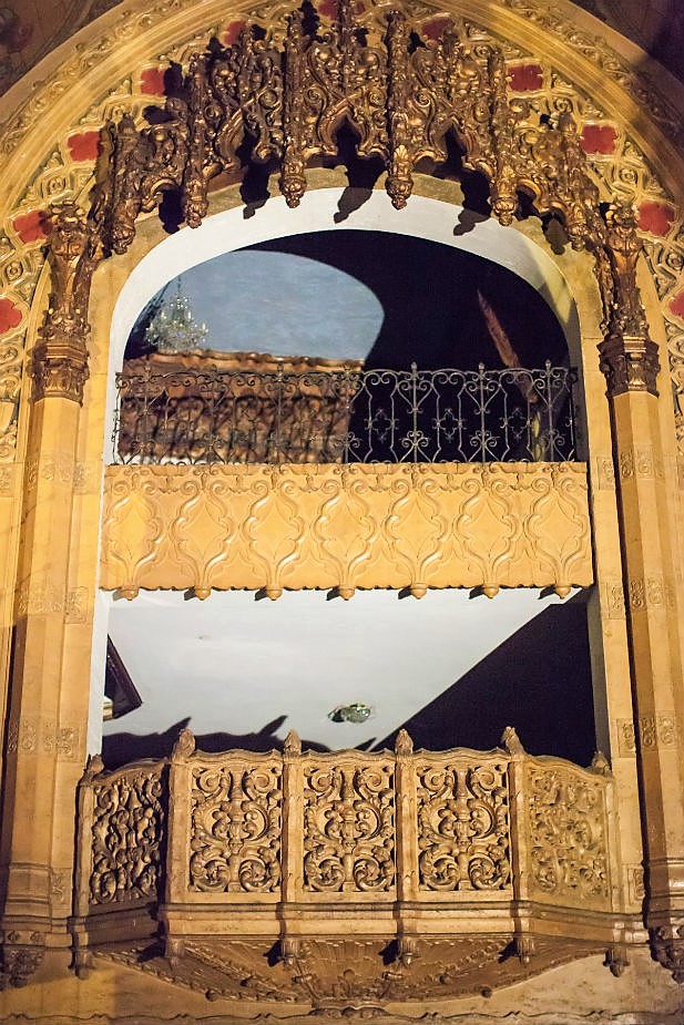 Halfway down the lobby toward house left. The curtained openings on the left look down onto the inner lobby. Photo: John Hough - 2016