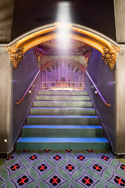 Heading up the house right stairs to the balcony level. Photo: John Hough - 2016. Thanks again, John! See more of his great theatre photos on his website www.ornatetheatres.com.