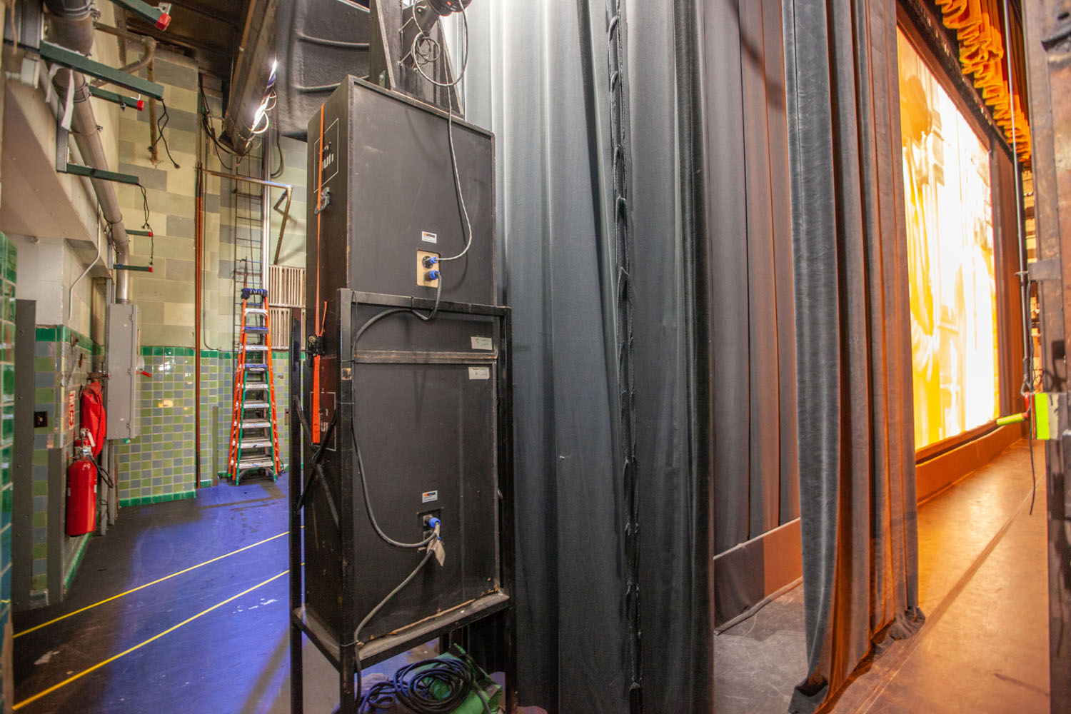 The up right corner. That's a 400 amp company switch on the wall. There's more power, and the house dimmer system, on the flyfloor above us. Photo: Bill Counter - 2018