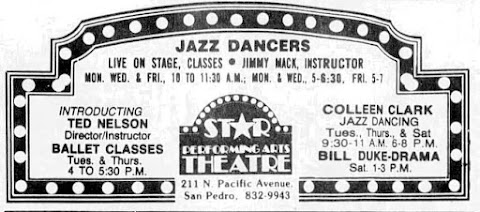 Looking for instructors for a new venture at the Barton to be called the Theatre of Performing Arts. It's a December 29, 1980 ad located by Ken McIntyre. A January 1981 legal notice published in the San Pedro New-Pilot revealed that it was to be a sole proprietorship operated by Jimmy Mack with the full business name "Jimmy Mack's Theatre of Performing Arts."